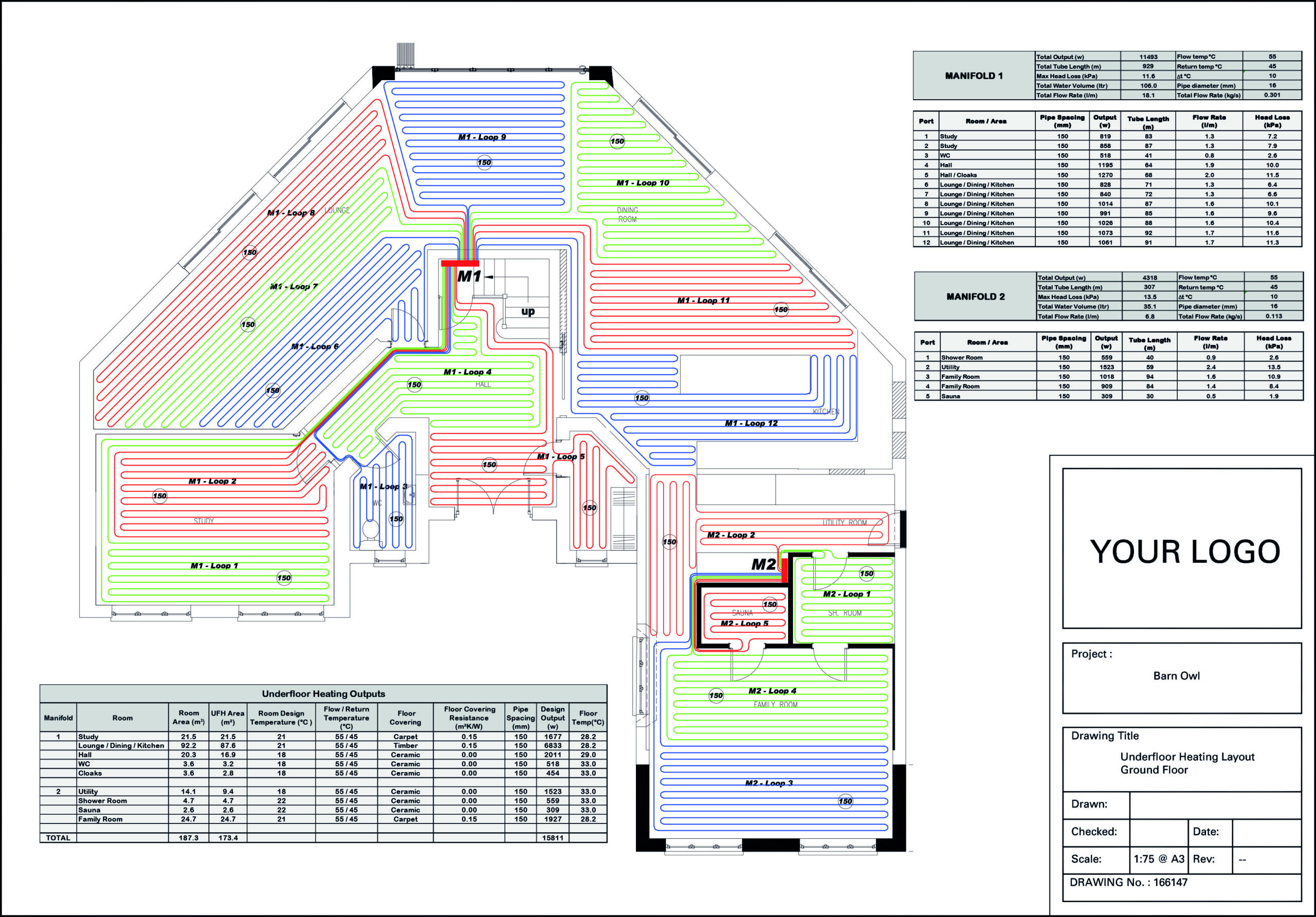 - output calculations in accordance with BS EN1264 and CIBSE Standards